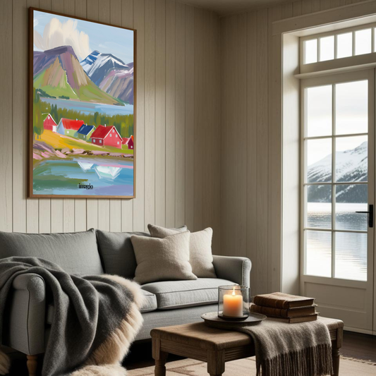 Red Houses in Norwegian Fyord