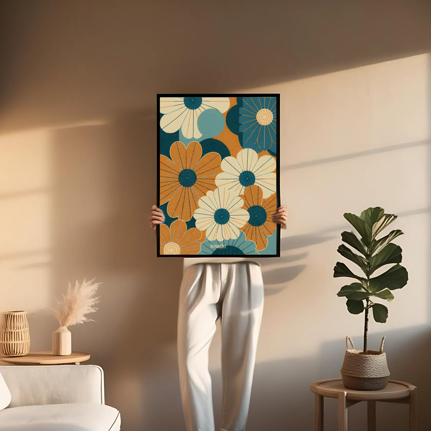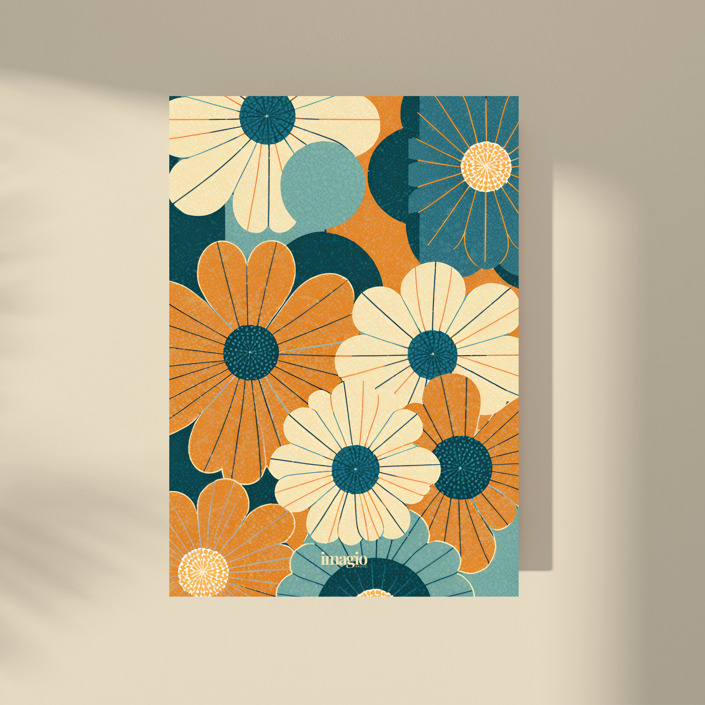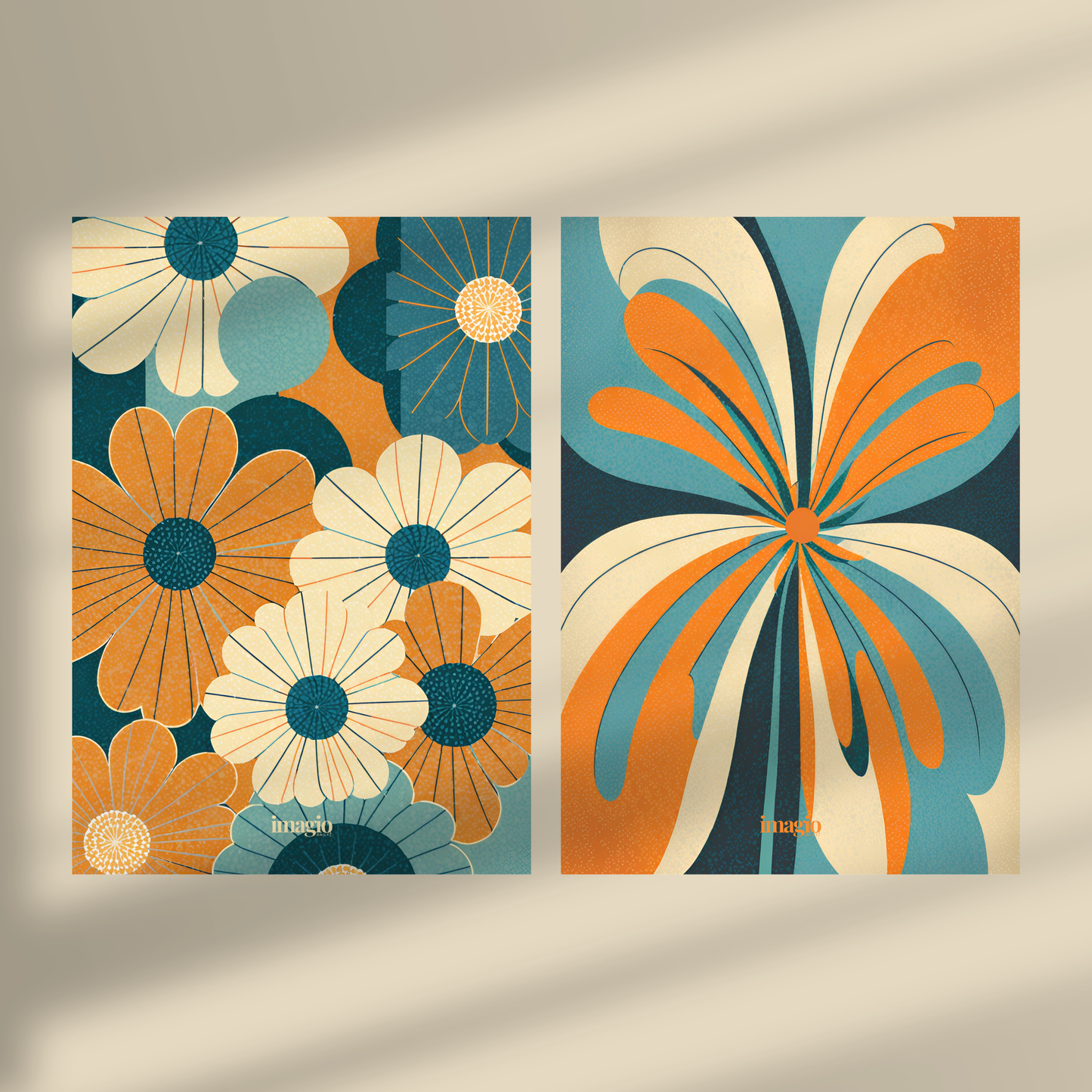 Abstract Flowers Blue&Orange #2 and #3 - Duo Set 30x40cm/50x70cm
