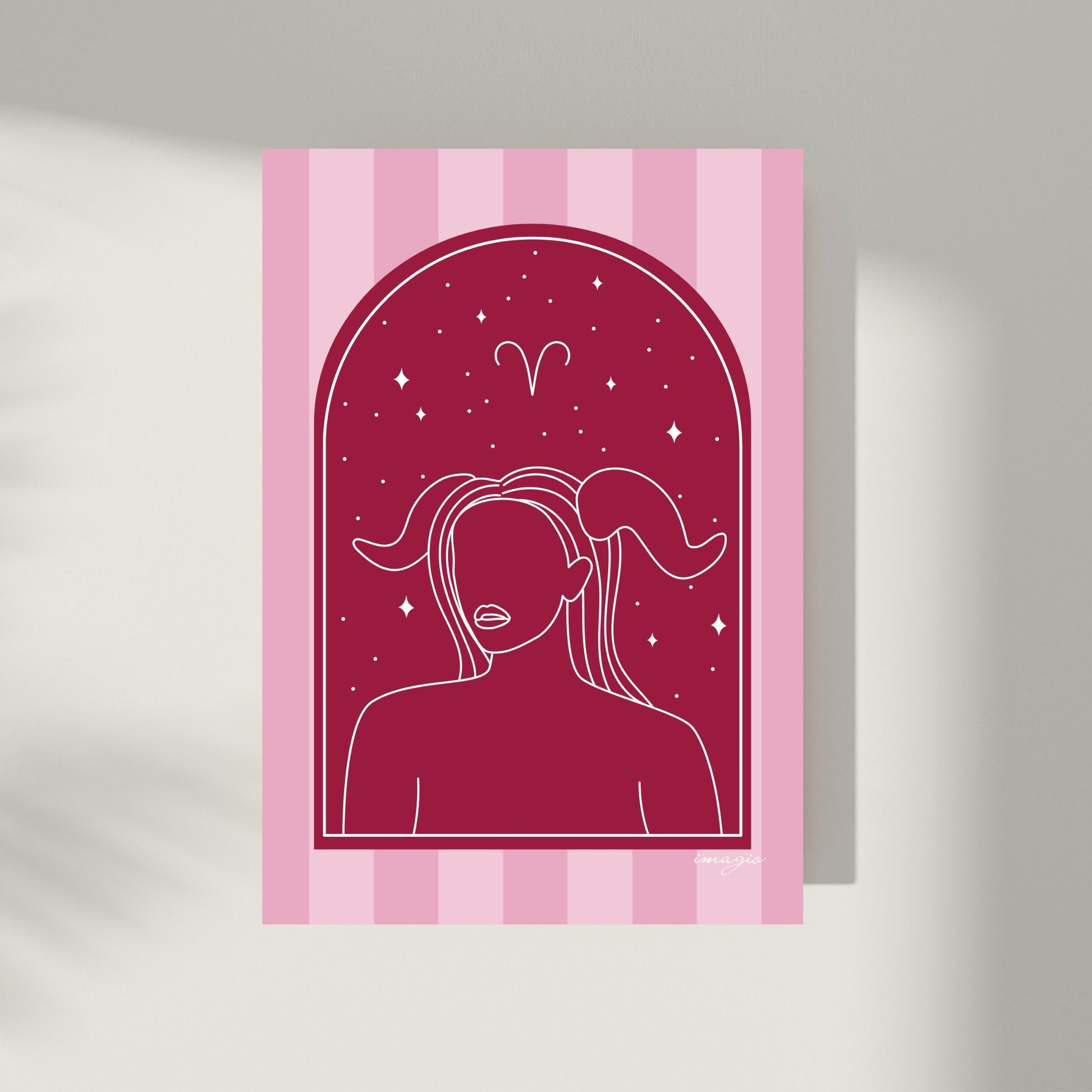 This poster brings the bold and passionate energy of fire signs. Intense burgundy-pink adds vibrancy and dynamism, while the playful text gives it personality and charm. Perfect for a living room, workspace, or any corner that could use energy, courage, and a touch of cosmic fun.