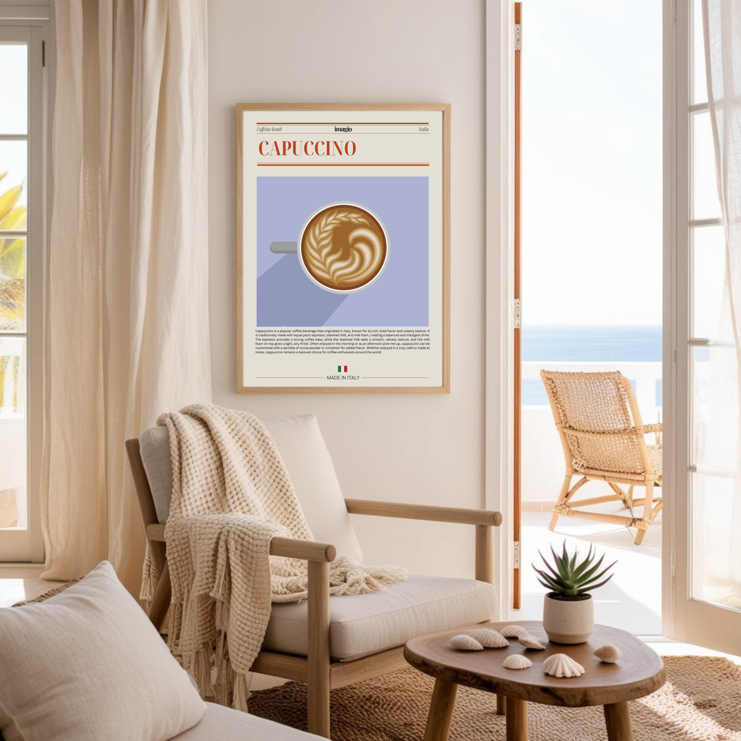 Experimente el lujoso sabor de nuestro Café Cappuccino - News. Saboree la rica y suave mezcla de café recién tostado, cubierto con espuma cremosa e infusionado con arte impreso. El fondo azul intenso rinde homenaje al arte y la sofisticación de un artículo de noticias. Disfrute de un delicioso y sofisticado capricho.