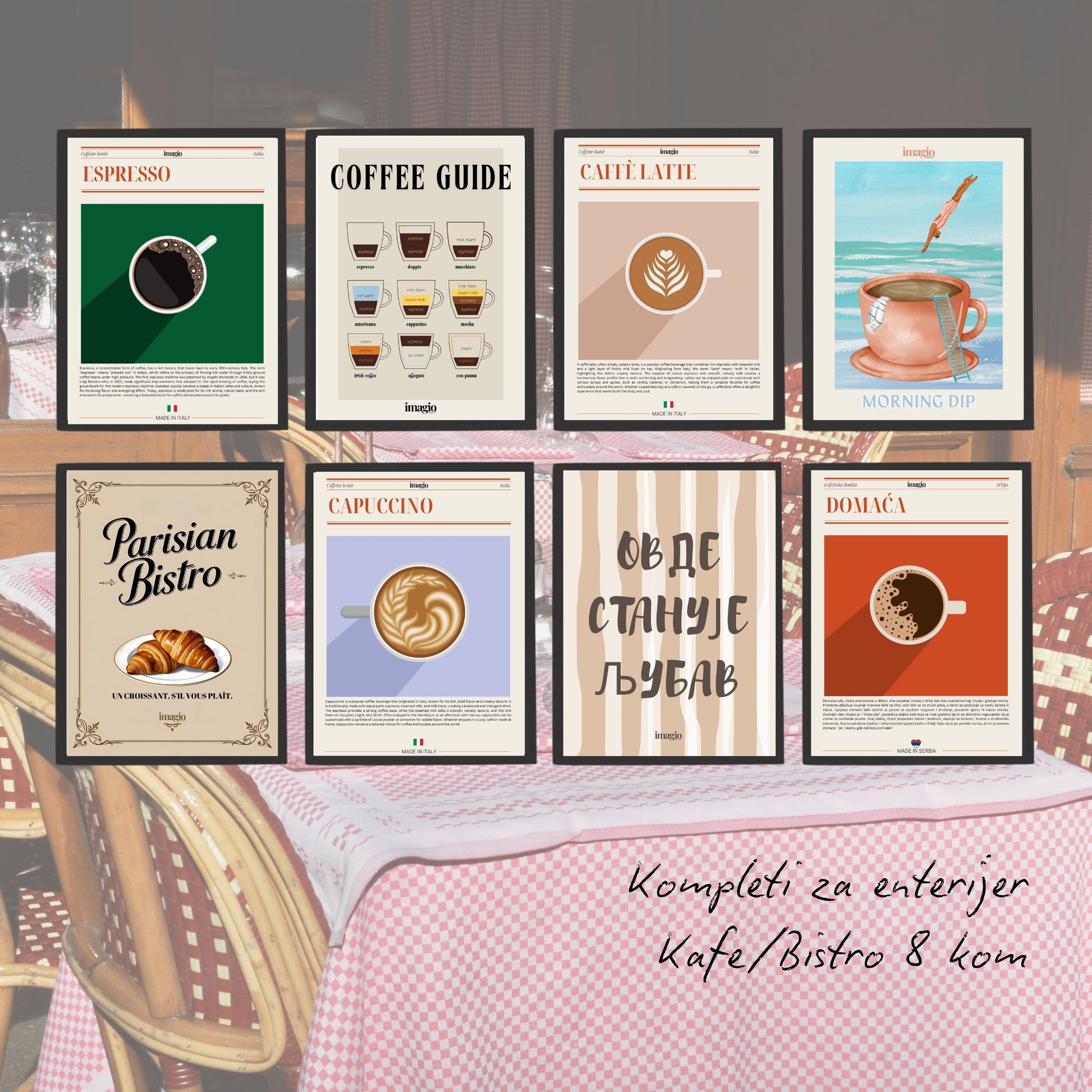 Set of 8 Posters for Cafés, Restaurants & Hospitality Spaces – Perfect Wall Art for Your Business