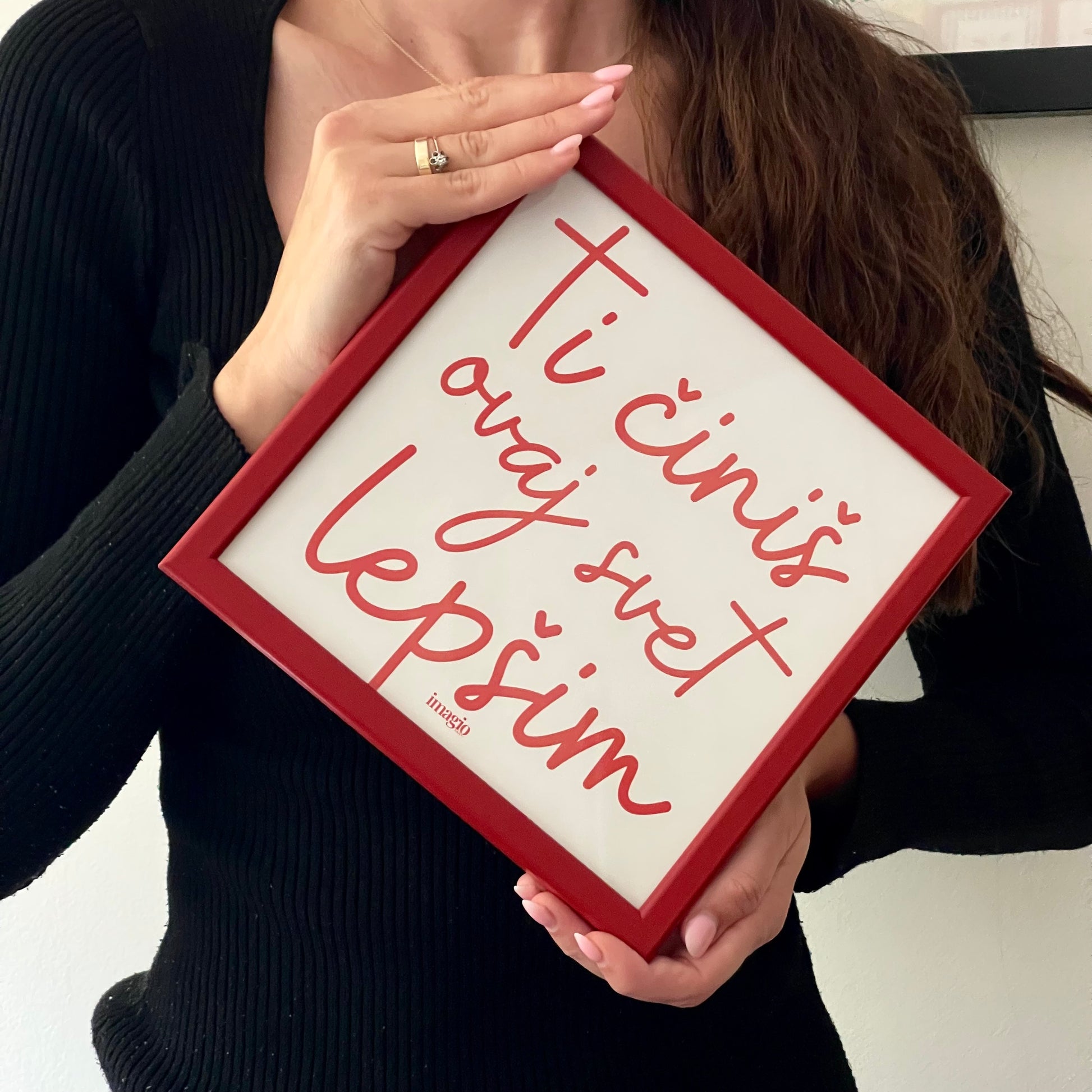 The artwork itself measures 20x20 cm, with a total frame size of 22x22 cm — just right for a wall, shelf, or any little corner in need of a touch of art.