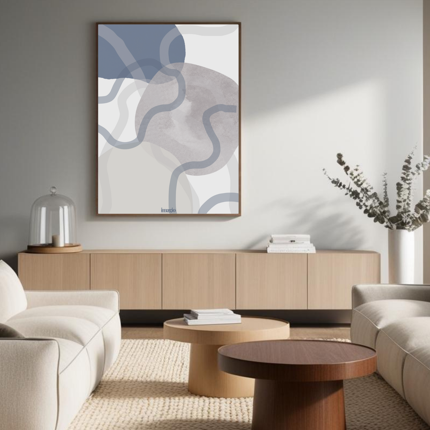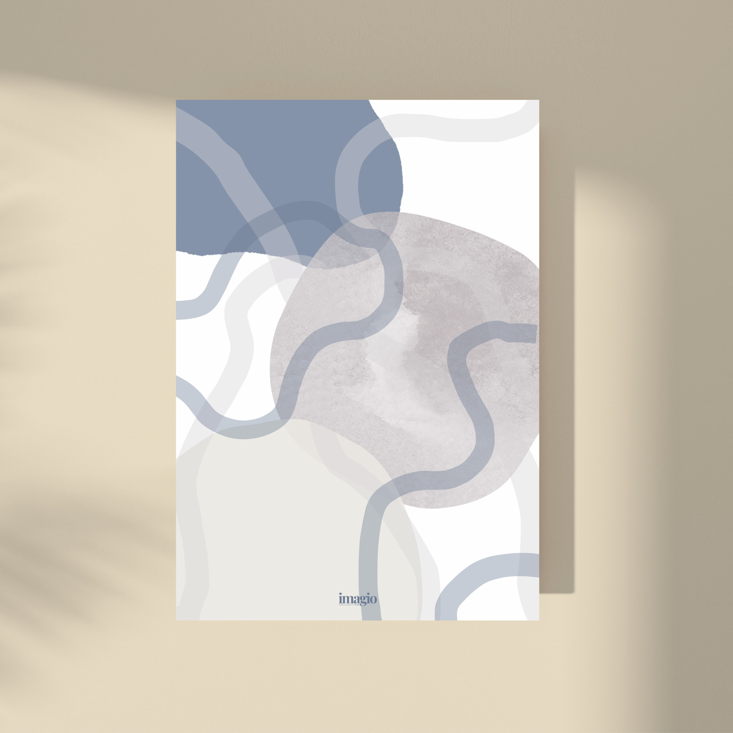 Experience the beauty and simplicity of abstract art in blue-grey tones. Let this stunning piece liven up any space with its unique shapes and nice tones. Perfect for adding a touch of sophistication to your home or office decor.