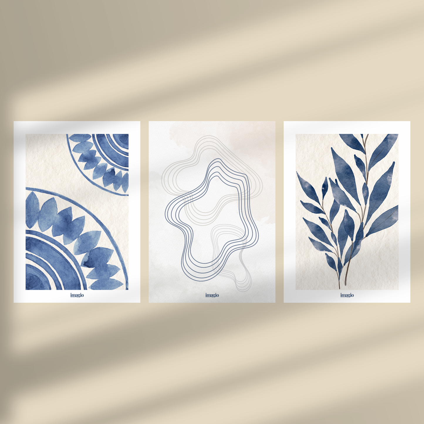 Abstract Color Palette Trio Set - Blues 30x40/40x50/50x70/60x90 cm