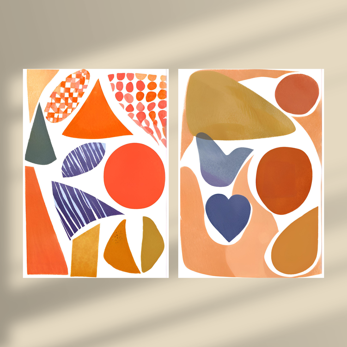 Abstract Shapes Red Palette & Brown Palette - Duo Set 30x40cm/50x70cm