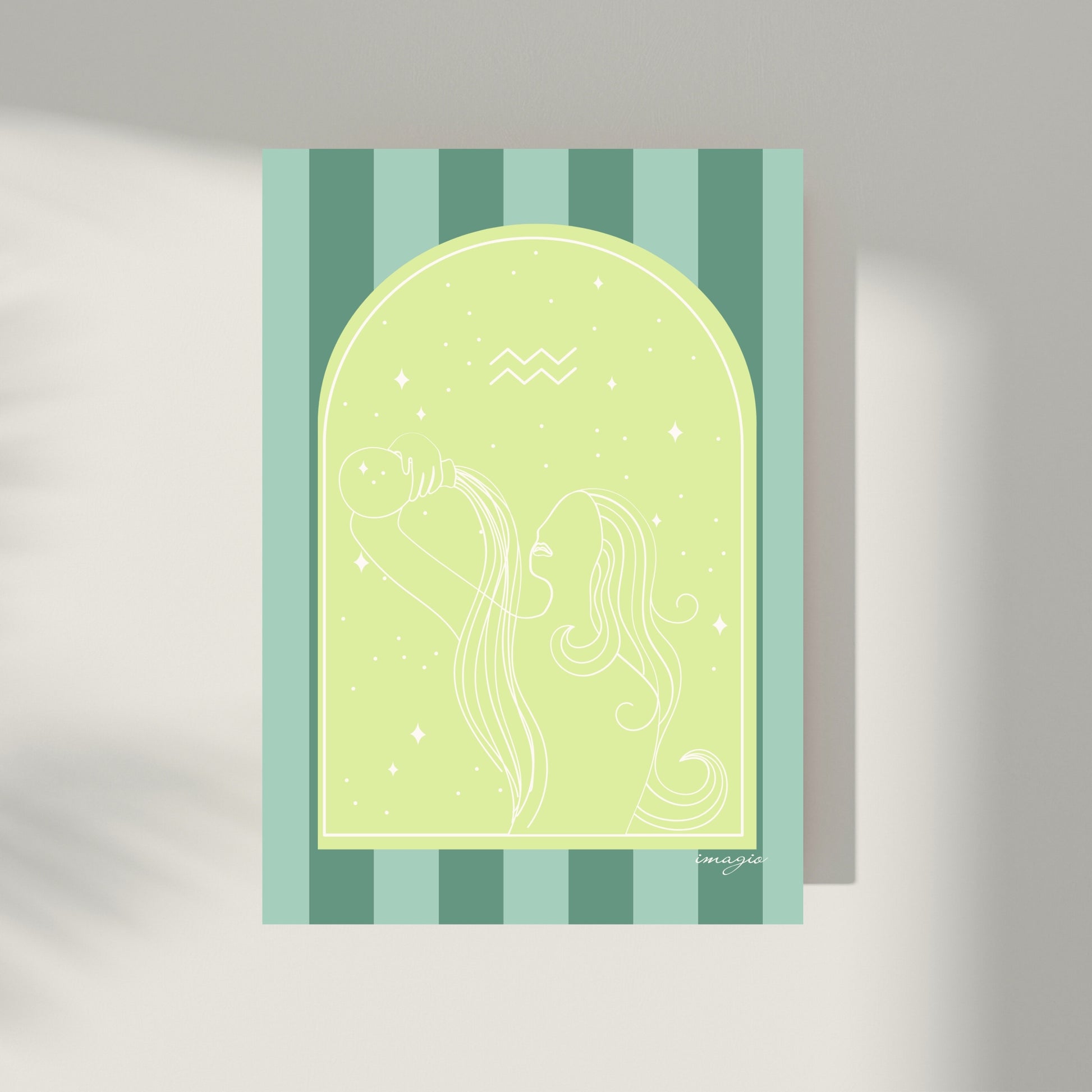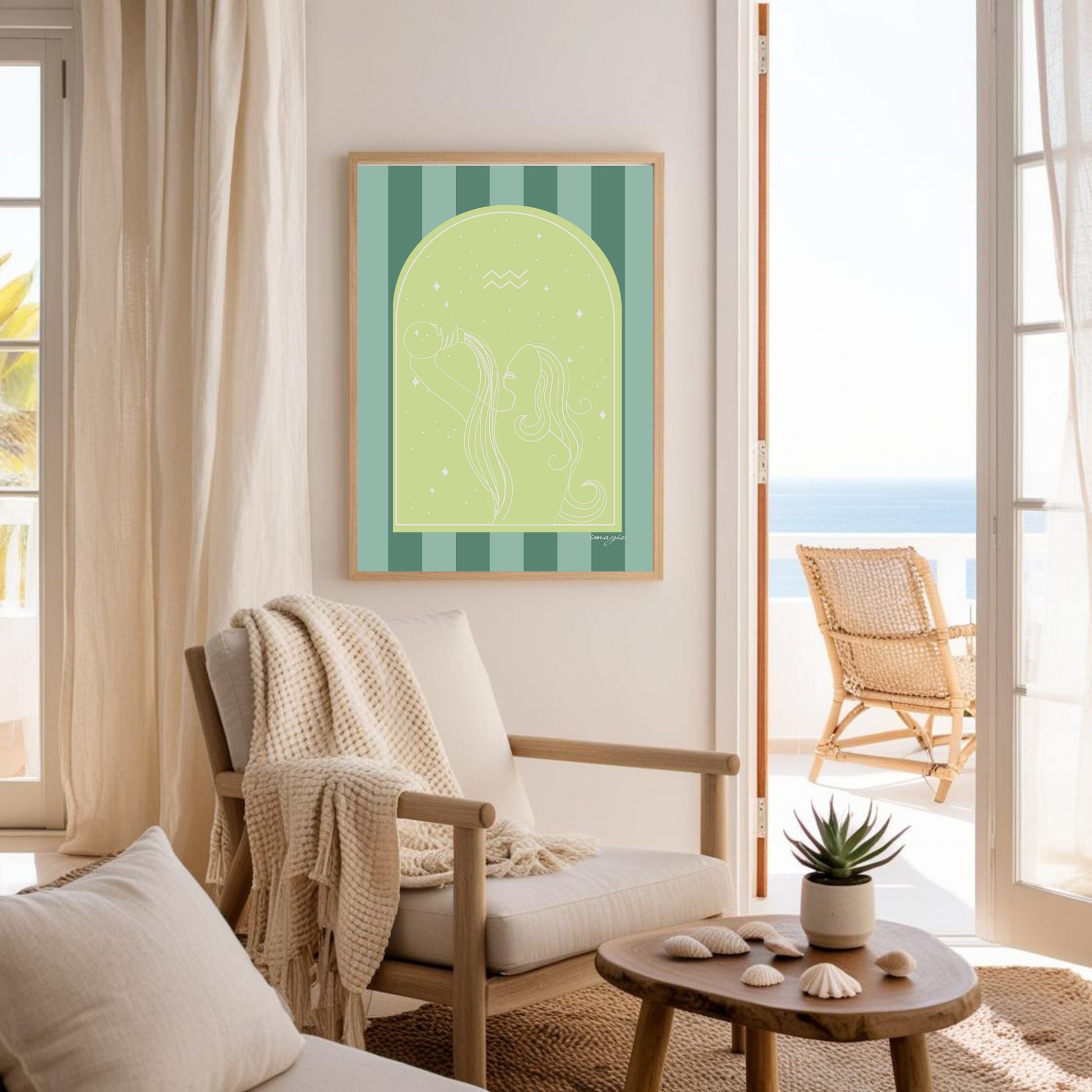 This poster brings the fresh and lively energy of air signs. Light green with a hint of lime creates a sense of lightness and creativity, while the playful text adds charm and personality. Perfect for a bedroom, workspace, or any corner that could use brightness, inspiration, and a touch of cosmic fun