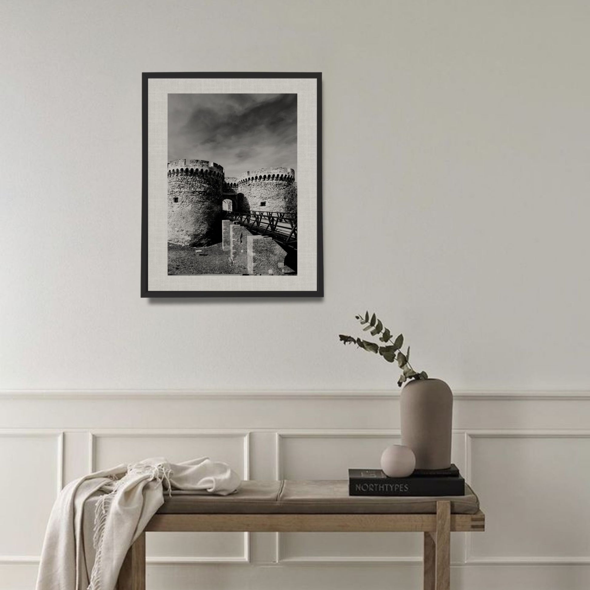 Experience the beauty of the Zindan Gate with this stunning black and white framed art. Measuring at 42x52 cm, the sleek black frame perfectly complements the intricate details of the gate. Enhance your space with this timeless piece, capturing the essence of history and culture.