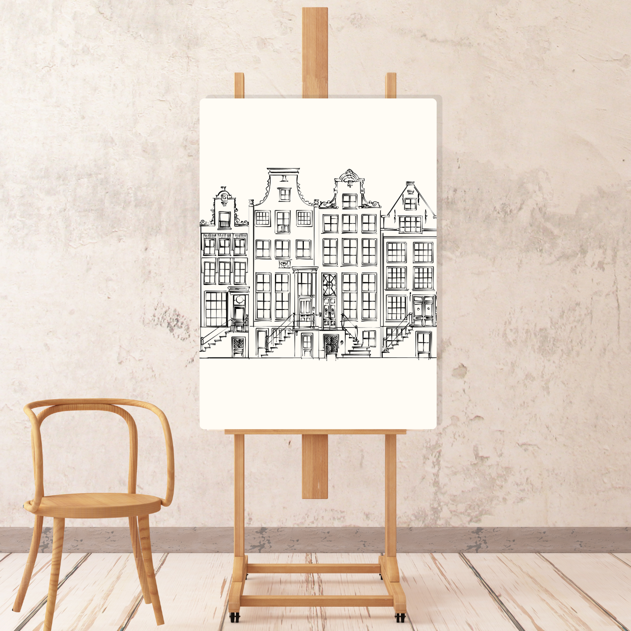 This Amsterdam B&W #2 print features a beautifully detailed black and white digital sketch of the city's iconic buildings printed on canvas. A perfect addition to any art collection, it captures the essence of Amsterdam's architectural charm. Part of Imagio's Canvas Art collection.