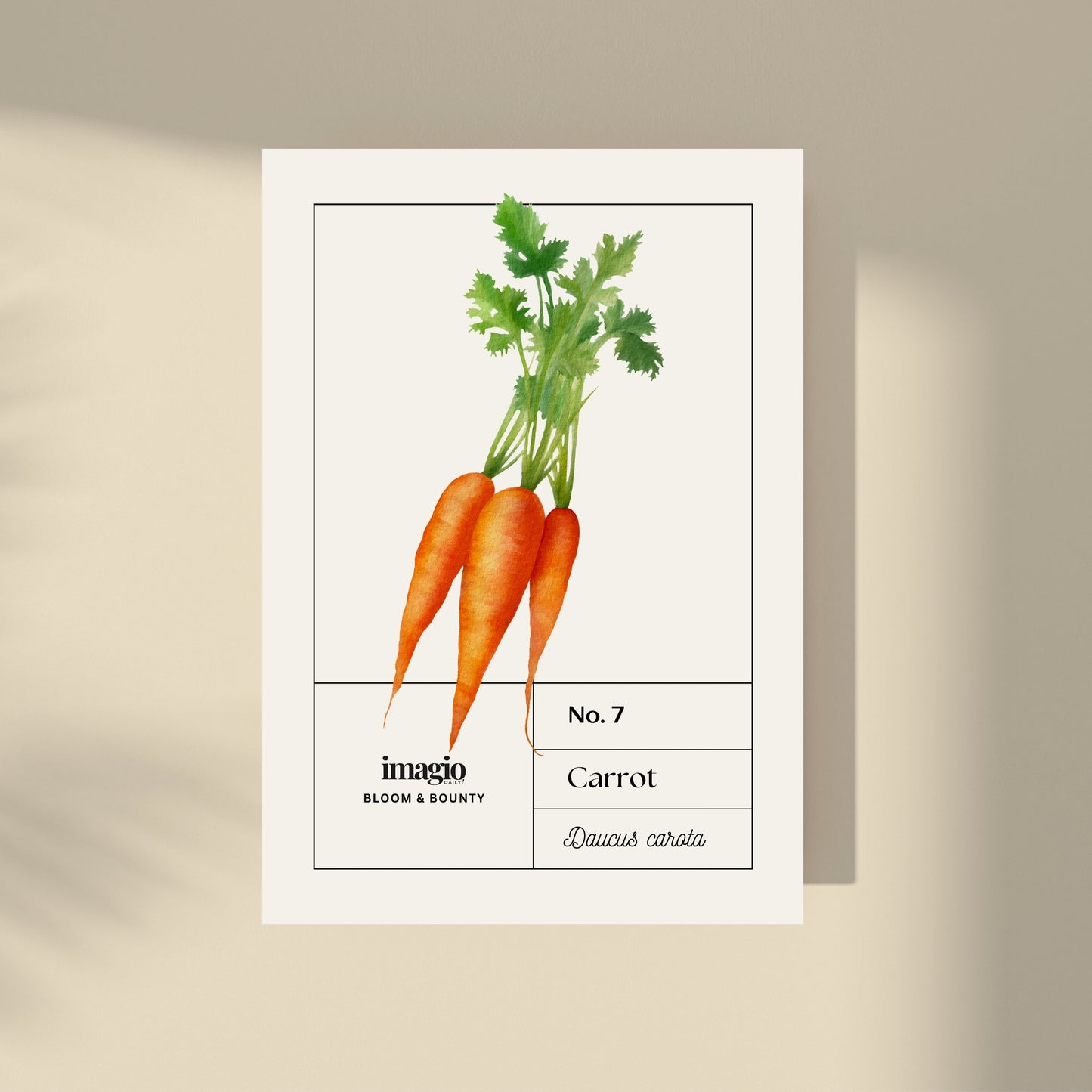 Enhance your home decor with this beautiful watercolor print of three vibrant carrots on a crisp white background. Perfect for any room, this high-quality print will add a touch of nature to your living space. Printed with premium ink for long-lasting color and detail.