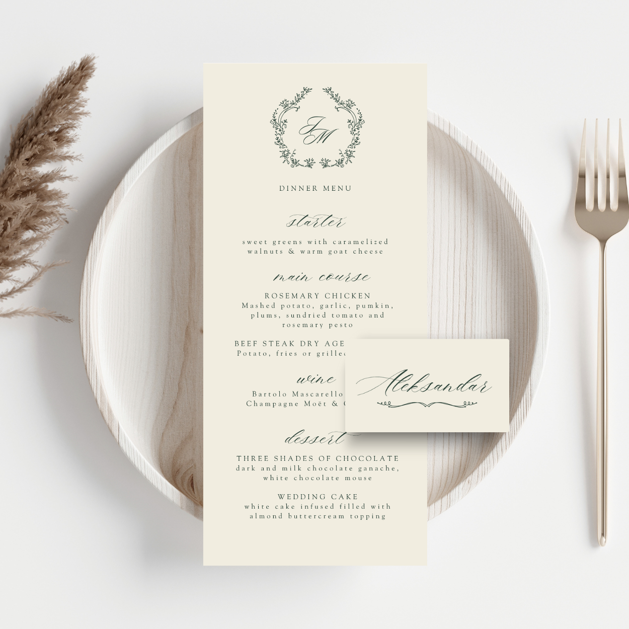 Discover the perfect pairing: Matching Menu and Place Cards here.
