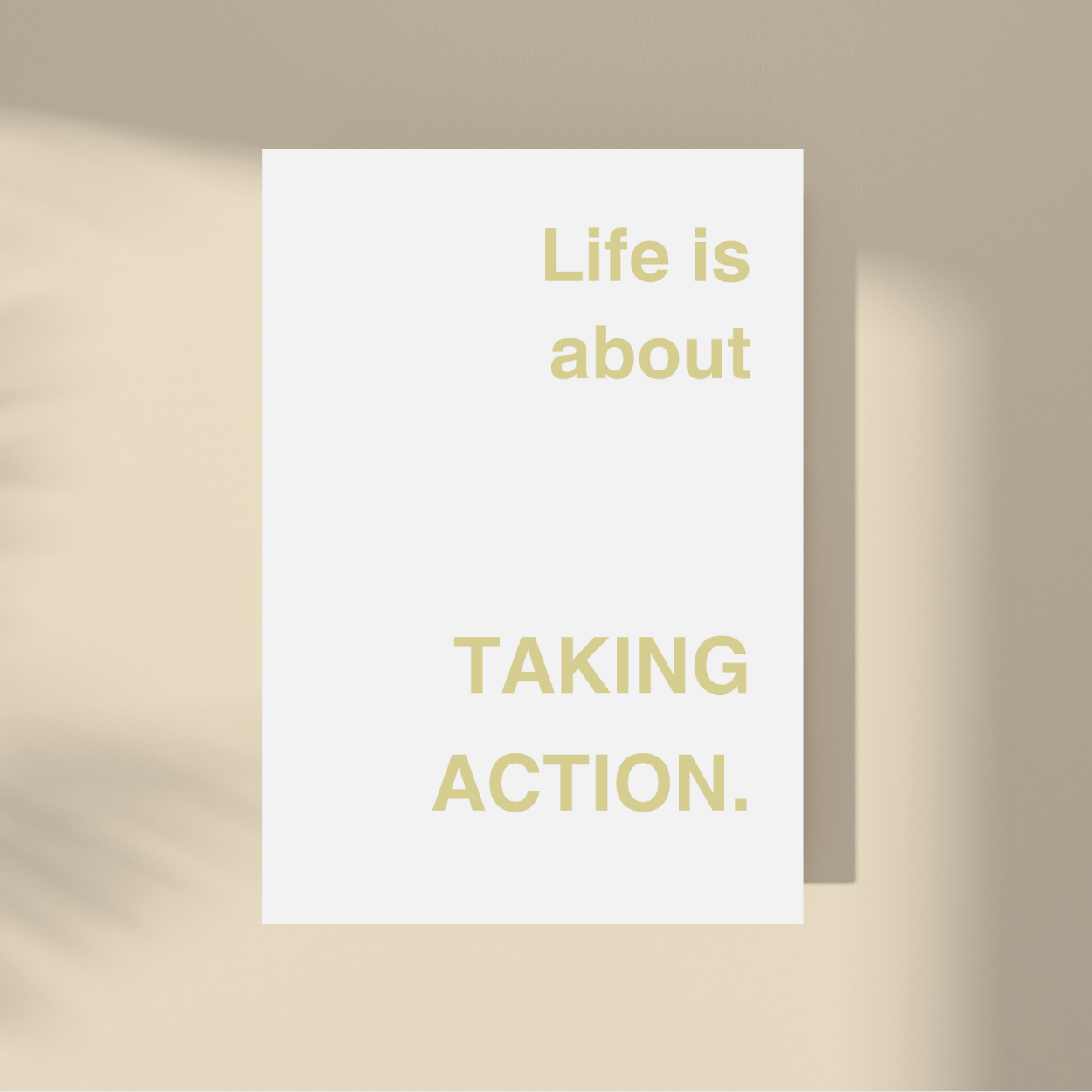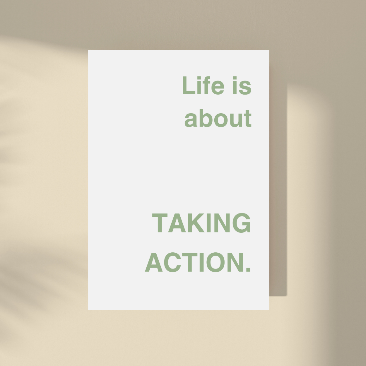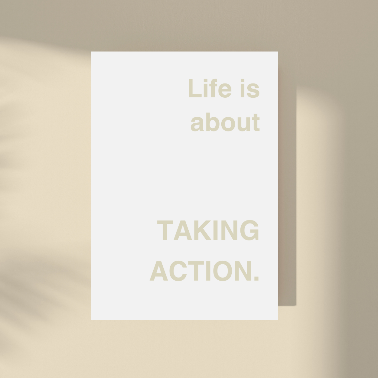 Embrace the present with our "Life Is About Taking Action." framed artwork. Simple yet powerful, this minimalistic design features a supportive quote on a neutral background. Let it remind you to savor each moment and live in the now. A timeless addition to any interior, perfect for those seeking a touch of sophistication. This art is available in multiple colors.