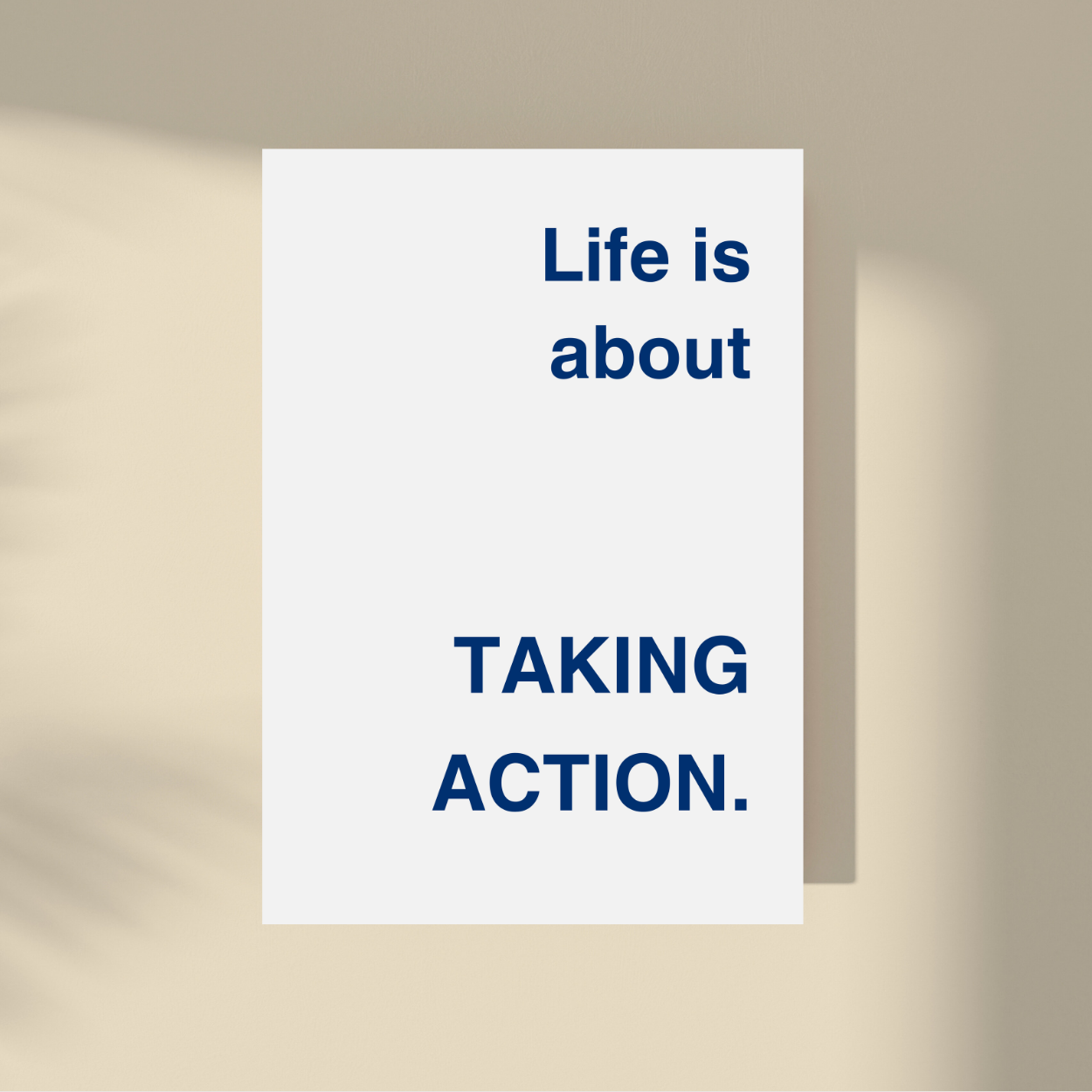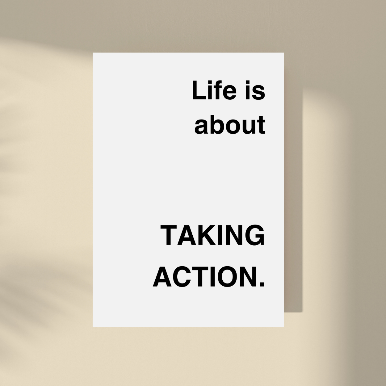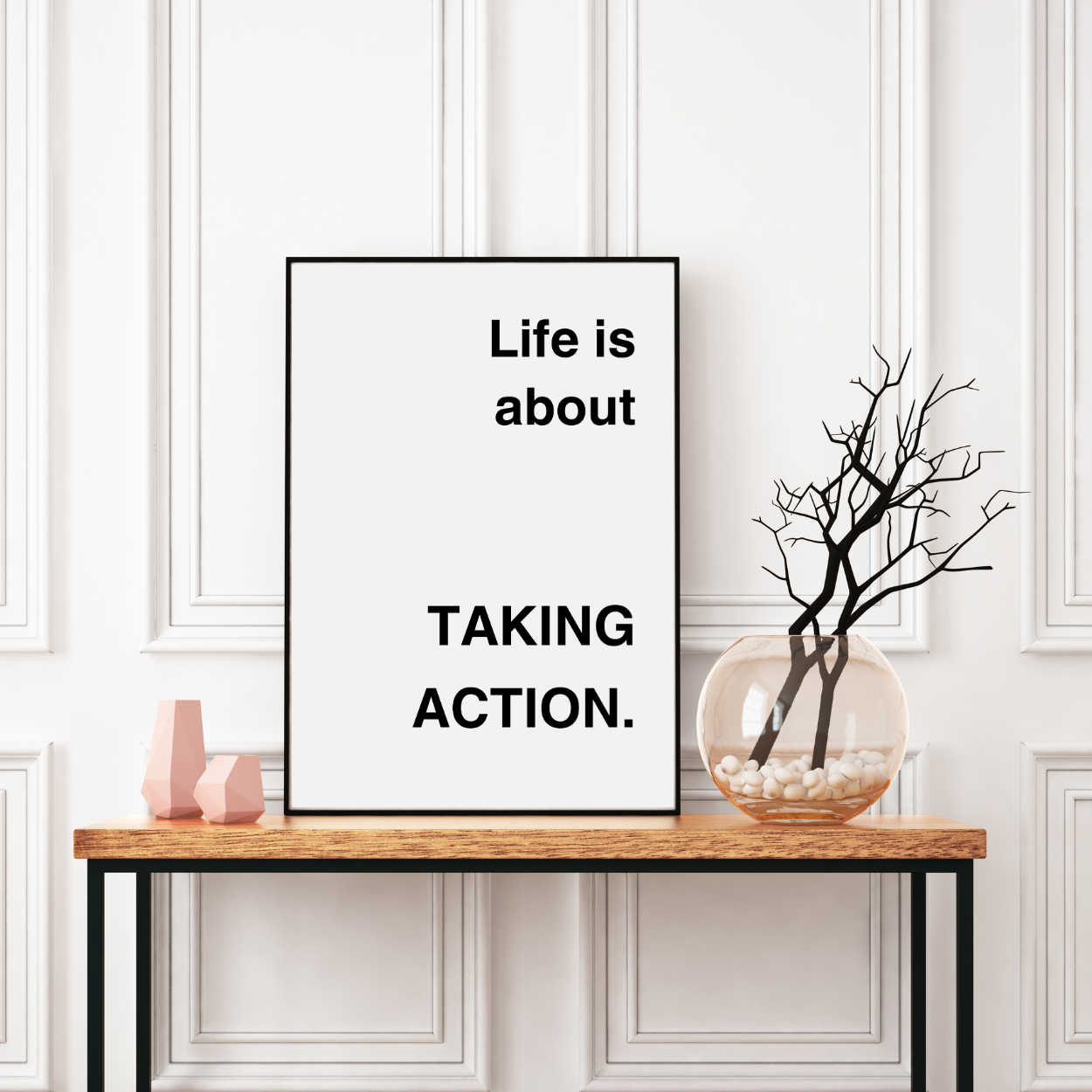Embrace the present with our "Life Is About Taking Action." framed artwork. Simple yet powerful, this minimalistic design features a supportive quote on a neutral background. Let it remind you to savor each moment and live in the now. A timeless addition to any interior, perfect for those seeking a touch of sophistication. This art is available in multiple colors.