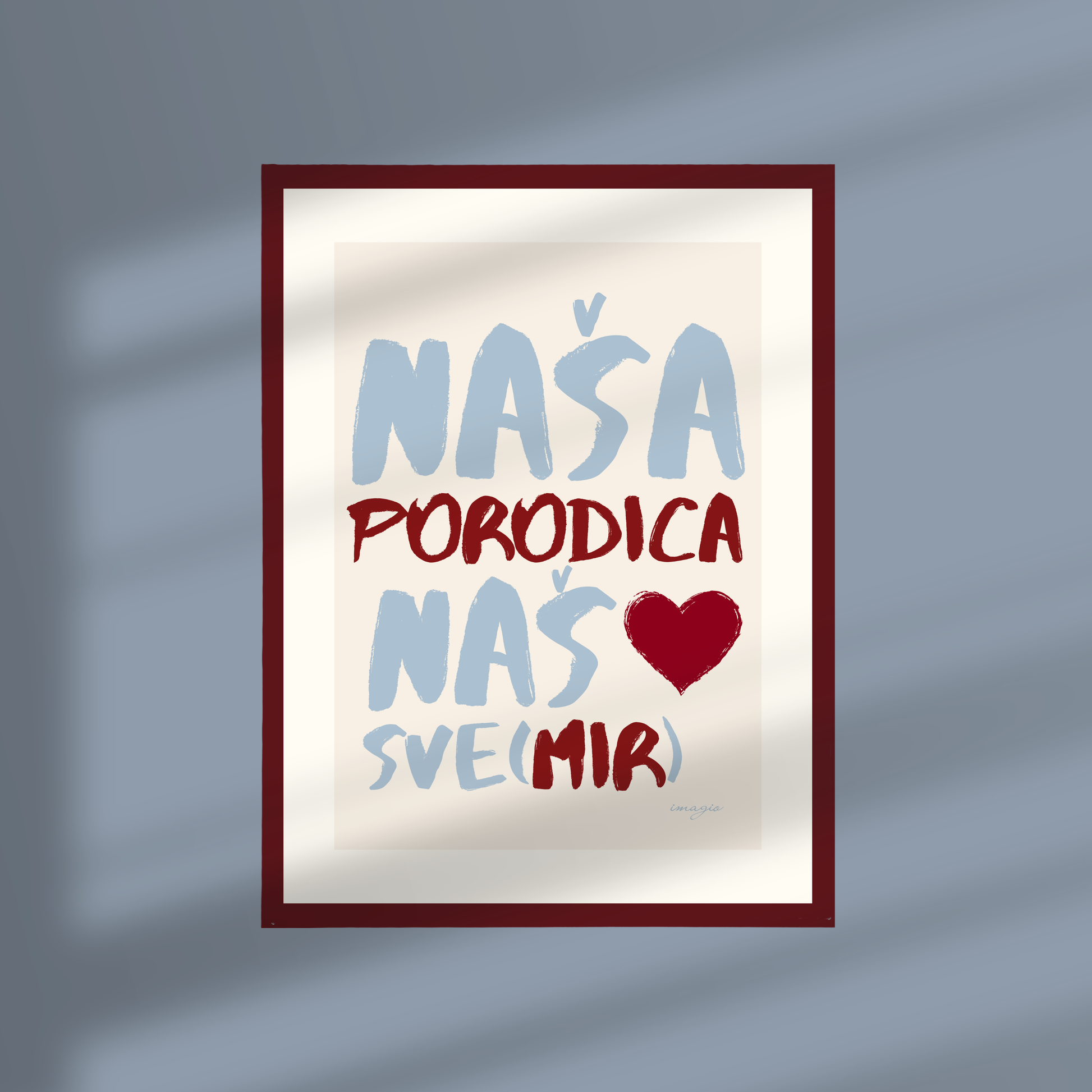 Framed Art "Painted Peace" - Naša porodica naš (sve)mir 32x42 / 52x72 cm