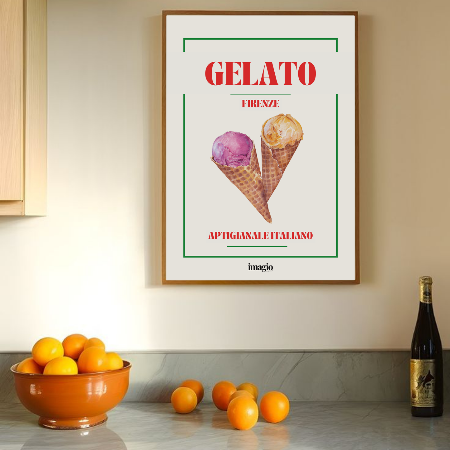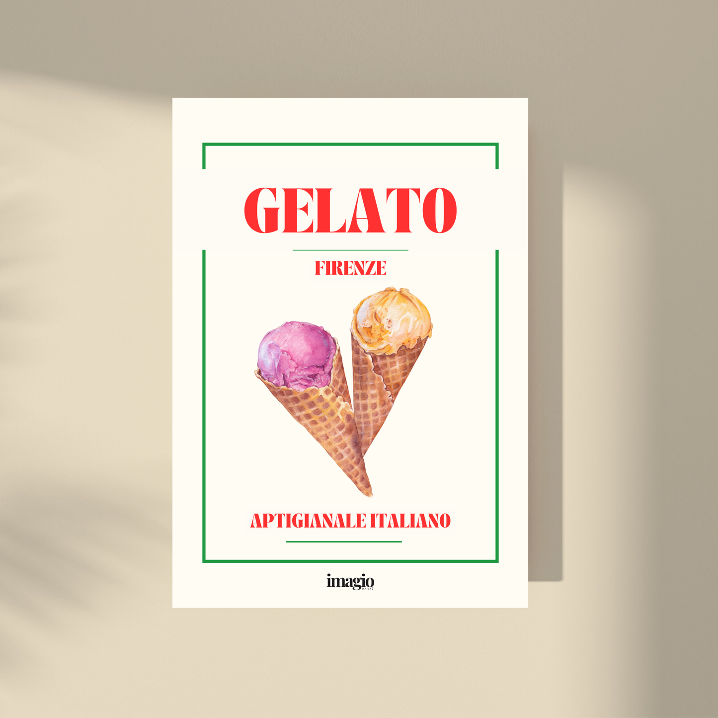 Indulge in a scoop of Gelato Firenze, captured in a vibrant poster. Satisfy your craving for Italian-style ice cream, without the calories! Bring a whimsical touch to your home decor with this playful print.