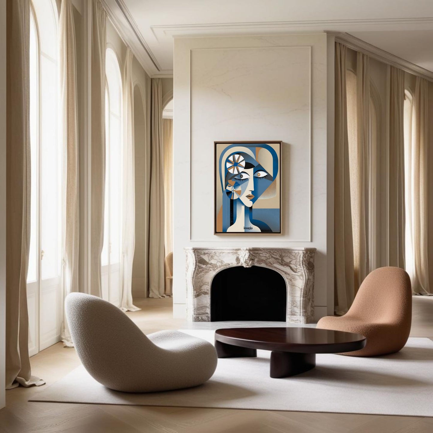 Discover the perfect blend of surrealism and cubism with our subcollection "Beige&Blues" of "Lost Between Cubism and Surrealism" collection. This striking art print, titled "Beige&Blues", captures the abstract essence of a girl in different tones of blue and beige colors, creating a perfect art print easy to blend in every interior space, giving it a modern, sophisticated touch. See the world through a unique lens with this one-of-a-kind piece.