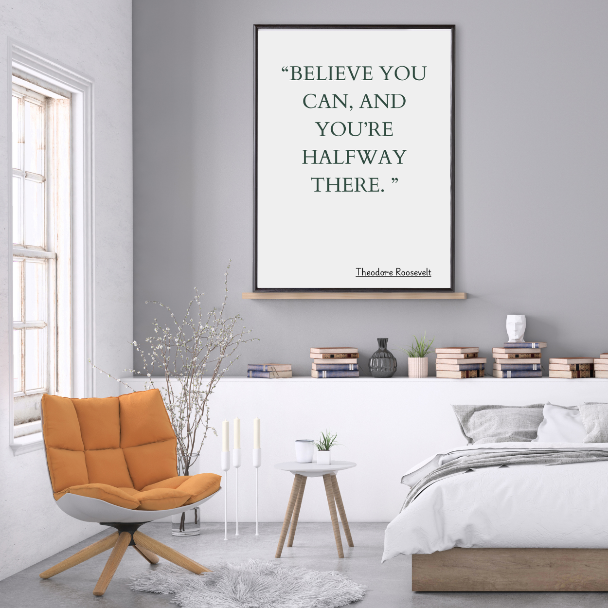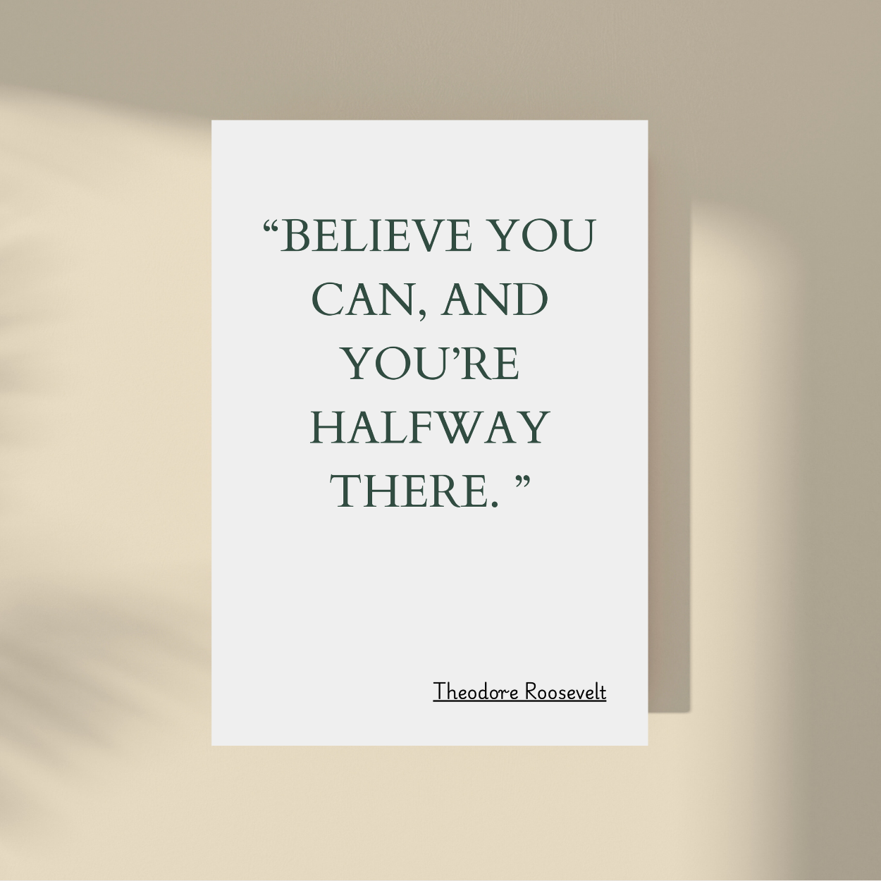 "Believe you can, and you're halfway there." Quote by Theodore Roosevelt.