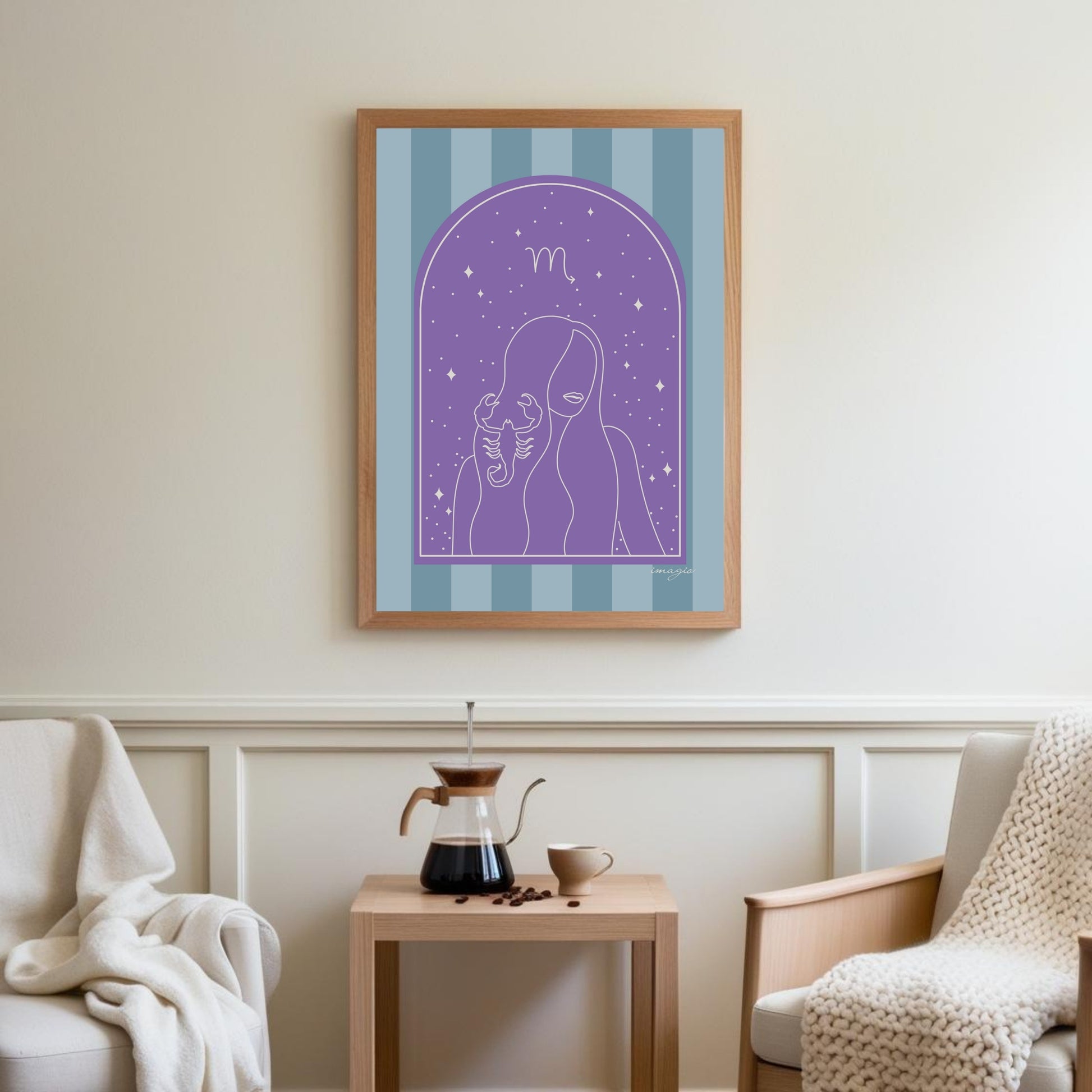 This poster captures the calm and fluid energy of water signs. Soft blue with a hint of purple brings a sense of harmony and introspection, while the playful text adds personality and charm. Perfect for decorating a bedroom, workspace, or any corner that could use a touch of cosmic fun.