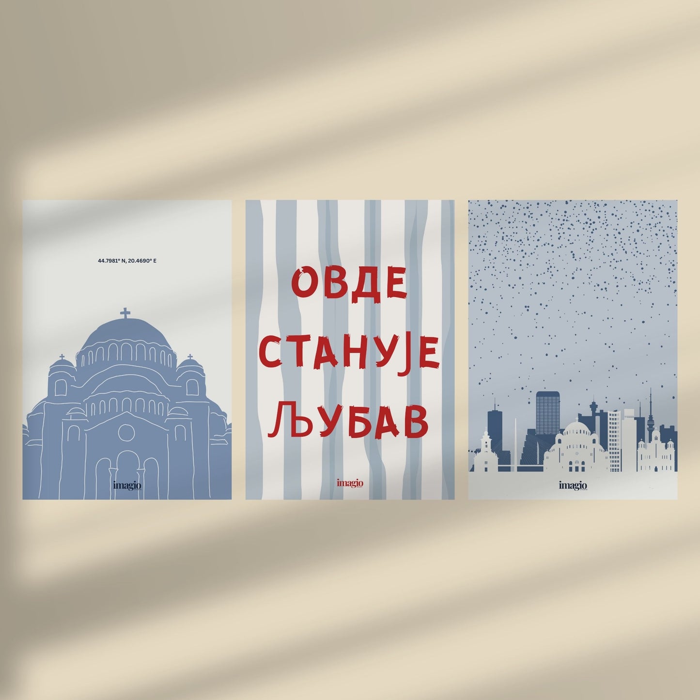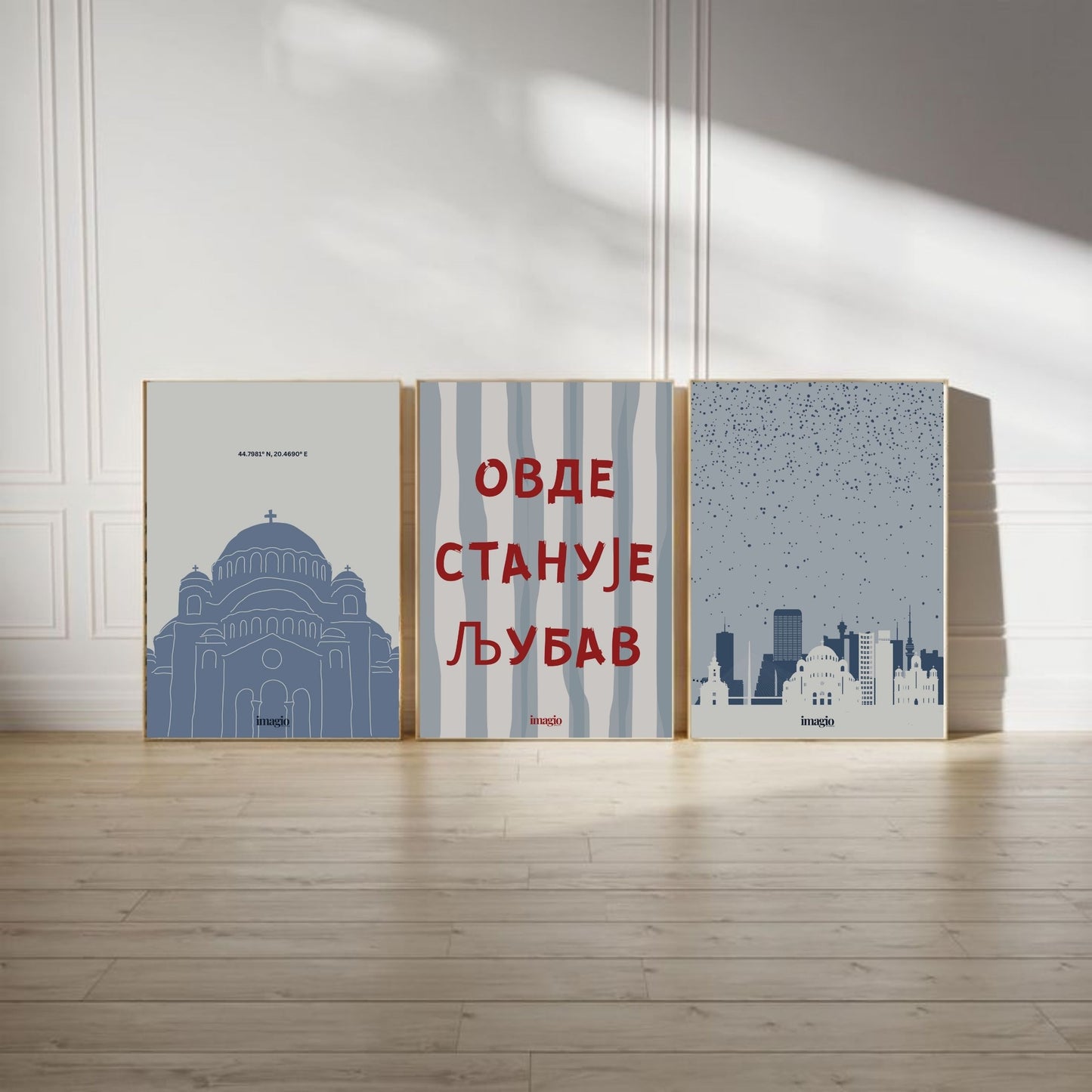 Trio Poster Set - Belgrade Blue & Ovde Stanuje Ljubav