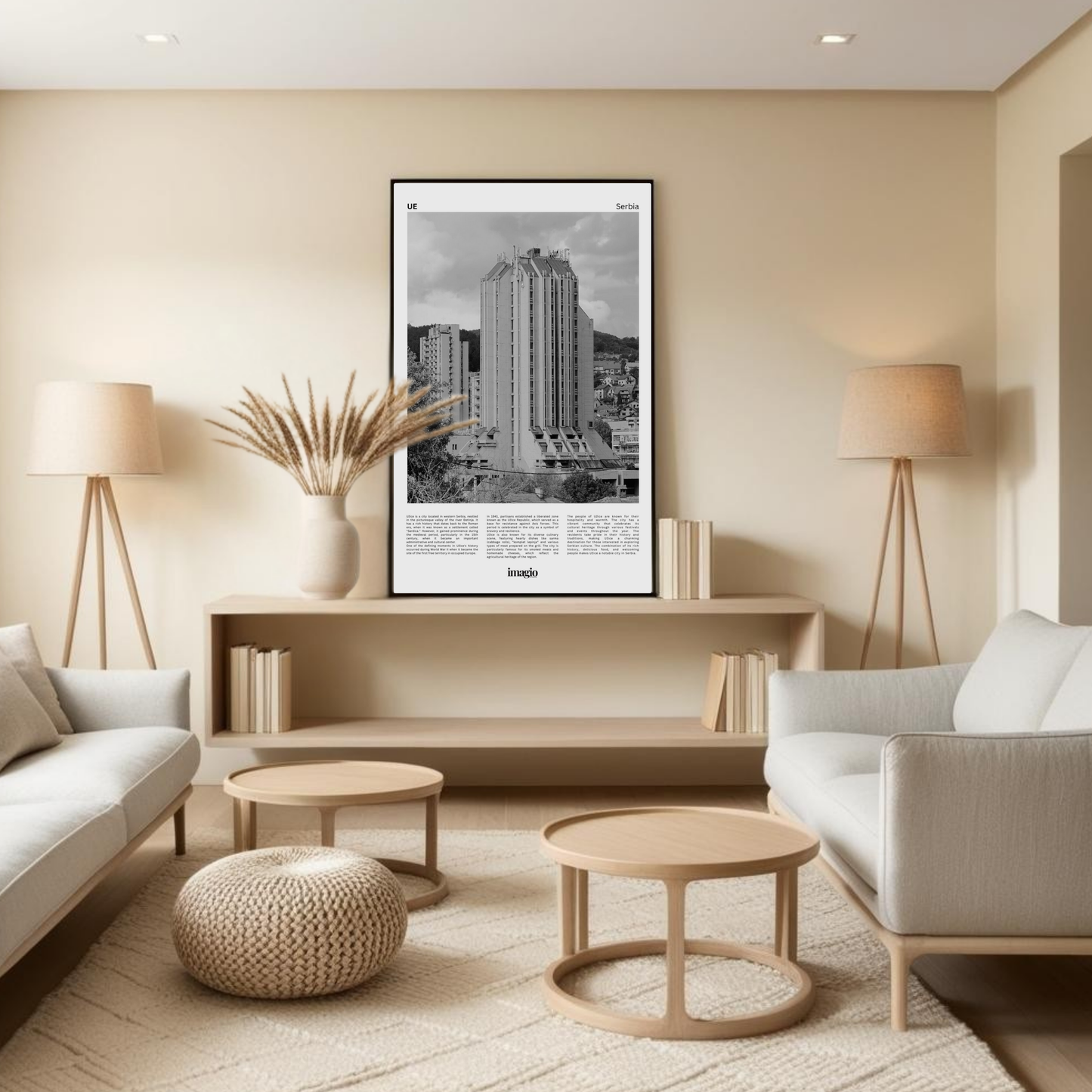 This stunning black and white photograph captures the beauty of Užice and its authentic city center skyscraper. Perfect for any decor, the image provides a sense of historic charm and nostalgia. Expertly printed for lasting quality.