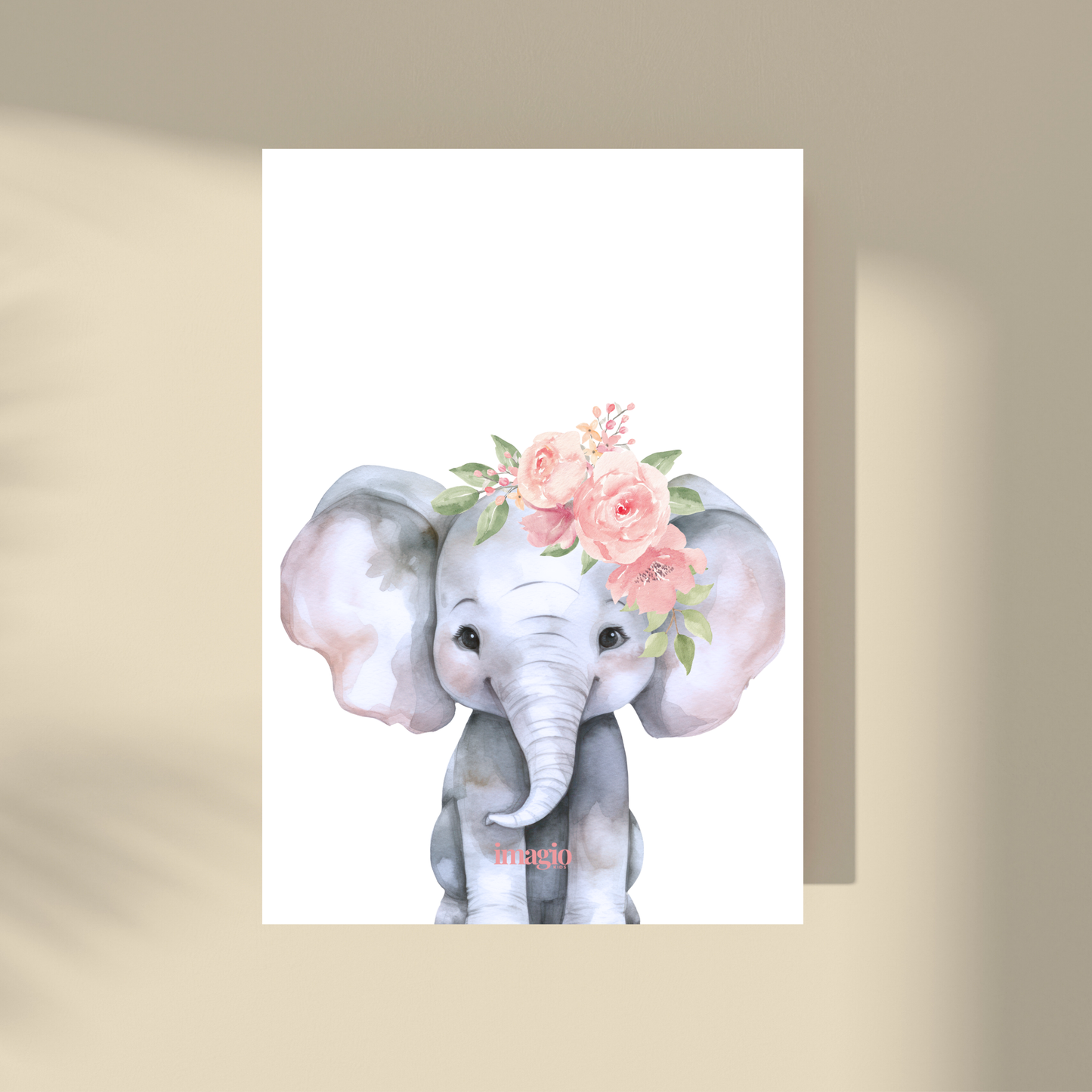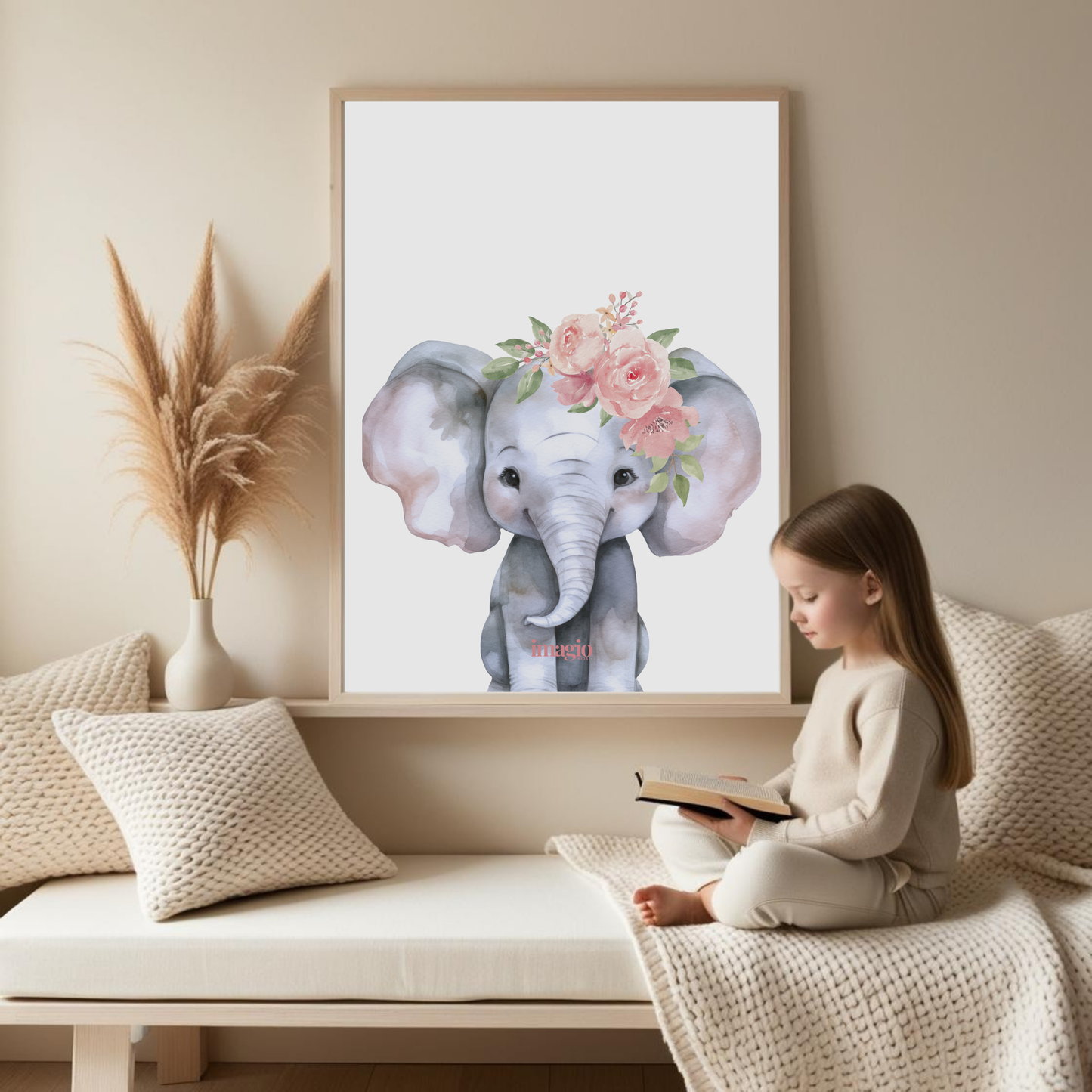 Transform your nursery into an elegant haven with our Watercolor Roses - Elephant wall print. The delicate watercolor roses and cute elephant add a touch of sophistication and charm, creating a luxurious ambiance. Elevate your nursery with this exclusive piece of art.