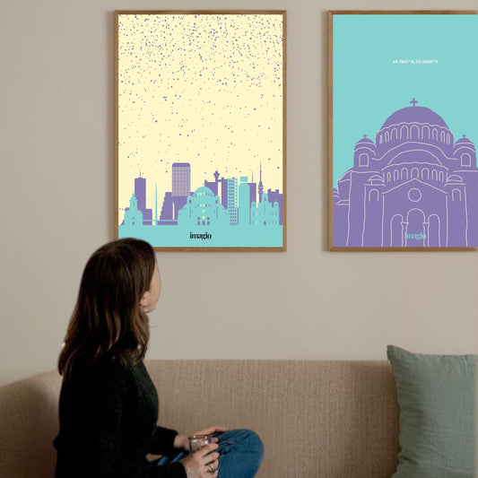Duo Poster Set – Pastel Saint Sava Temple & Belgrade Panorama