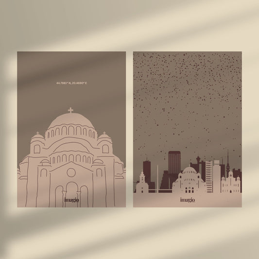 Duo Poster Set – Hazelnut Saint Sava Temple & Belgrade Panorama