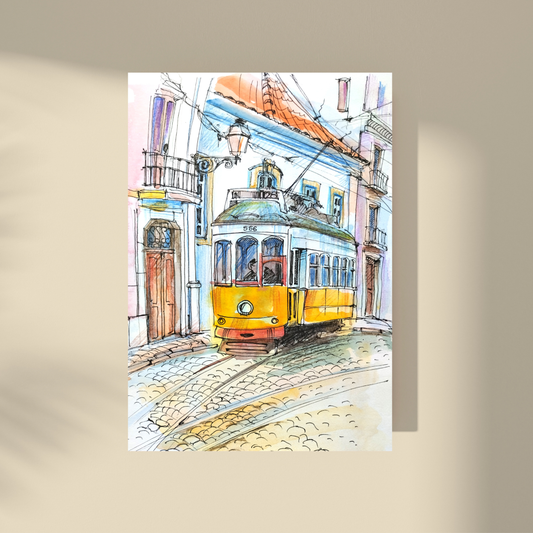 Lisbon Ride With a Yellow Tram & Lisbon Plain Yellow - Duo Set 30x40cm/50x70cm