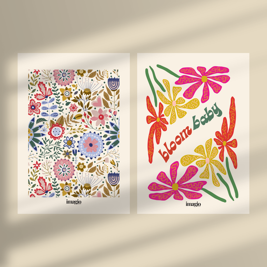 Abstract Flowers, Bloom Baby & Flower Pattern - Duo Set 30x40cm/50x70cm