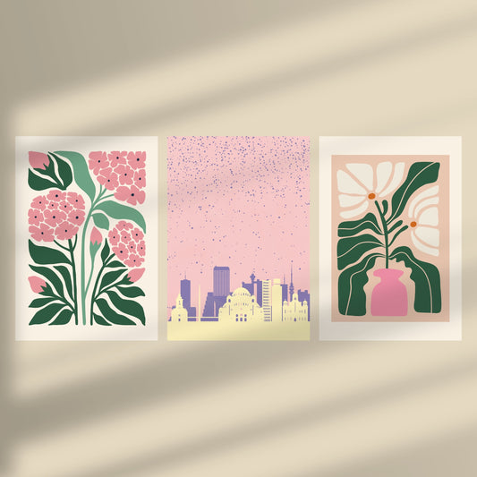 Pink Belgrade & Flowers Trio Set 30x40/40x50/50x70cm