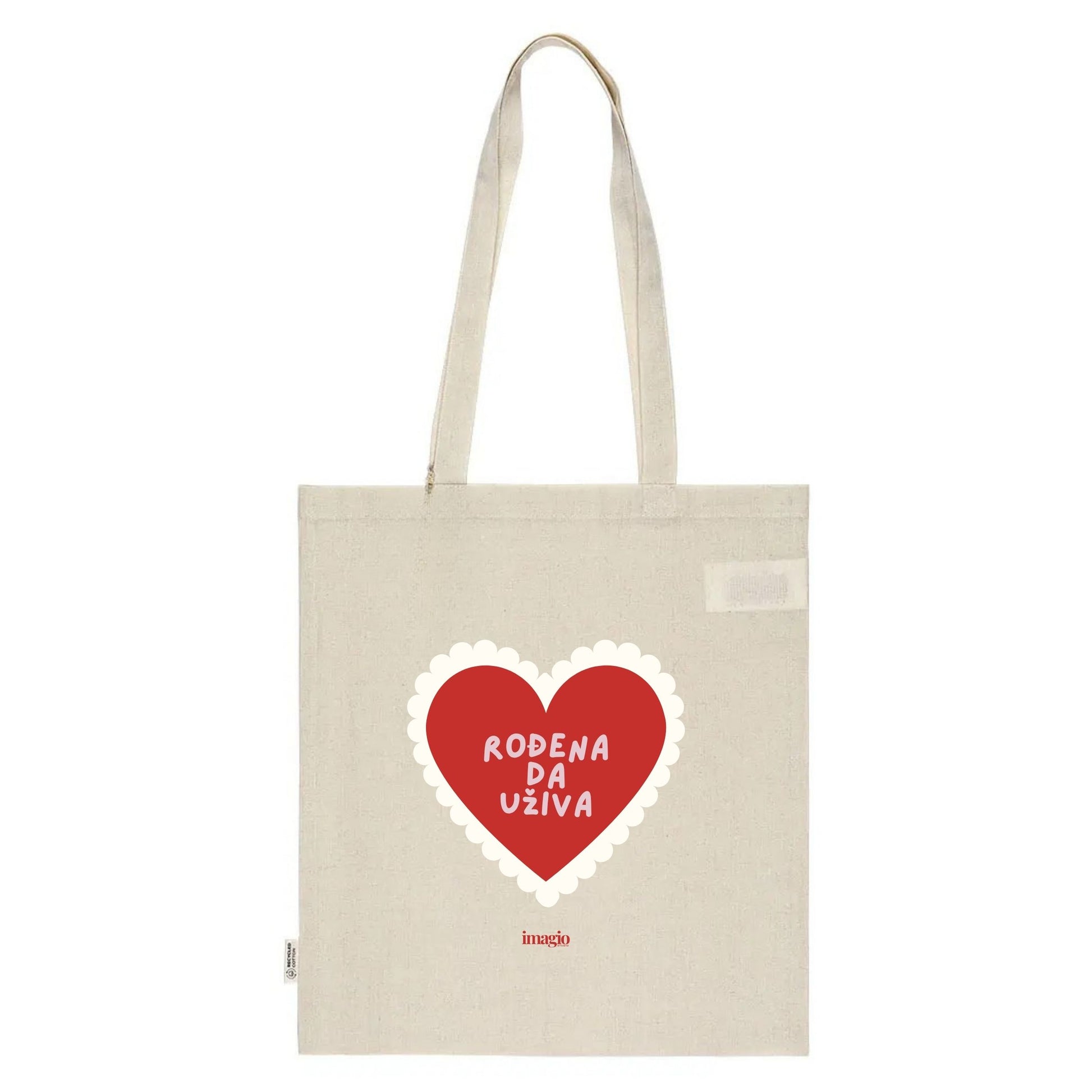 Imagio tote bag je praktičan i održiv pamučni ceger izrađen od recikliranih vlakana, obogaćen prepoznatljivim Imagio dizajnom. Idealan je za svakodnevnu kupovinu, šetnju gradom ili kao stylish detalj koji spaja funkcionalnost i estetiku.