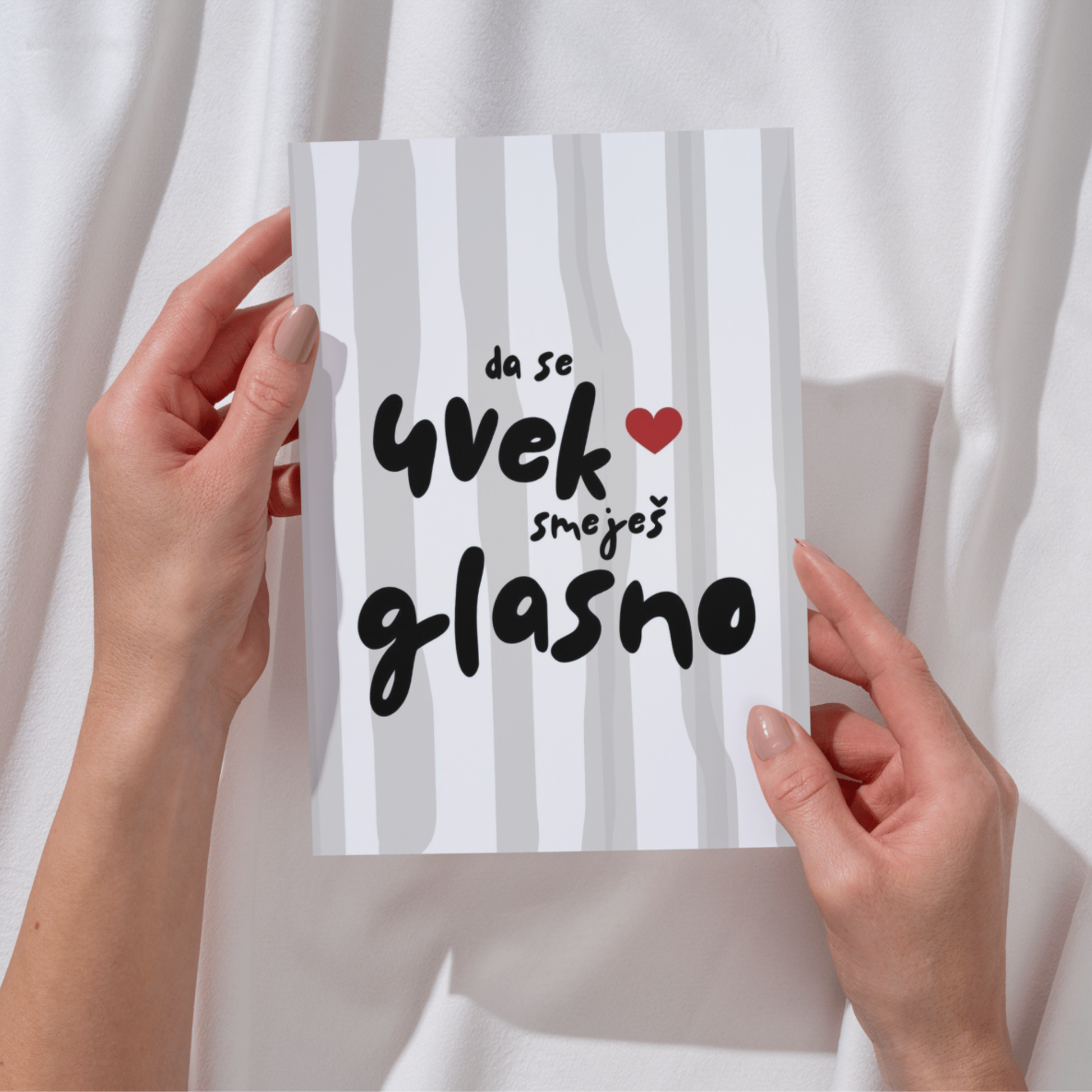 Naše čestitke štampane su na 300g reljefnom papiru i dolaze uz belu elegantnu kovertu. Upišite vašu poruku u napomeni pri kupovini, a mi ćemo je odštampati i zalepiti u čestitku.