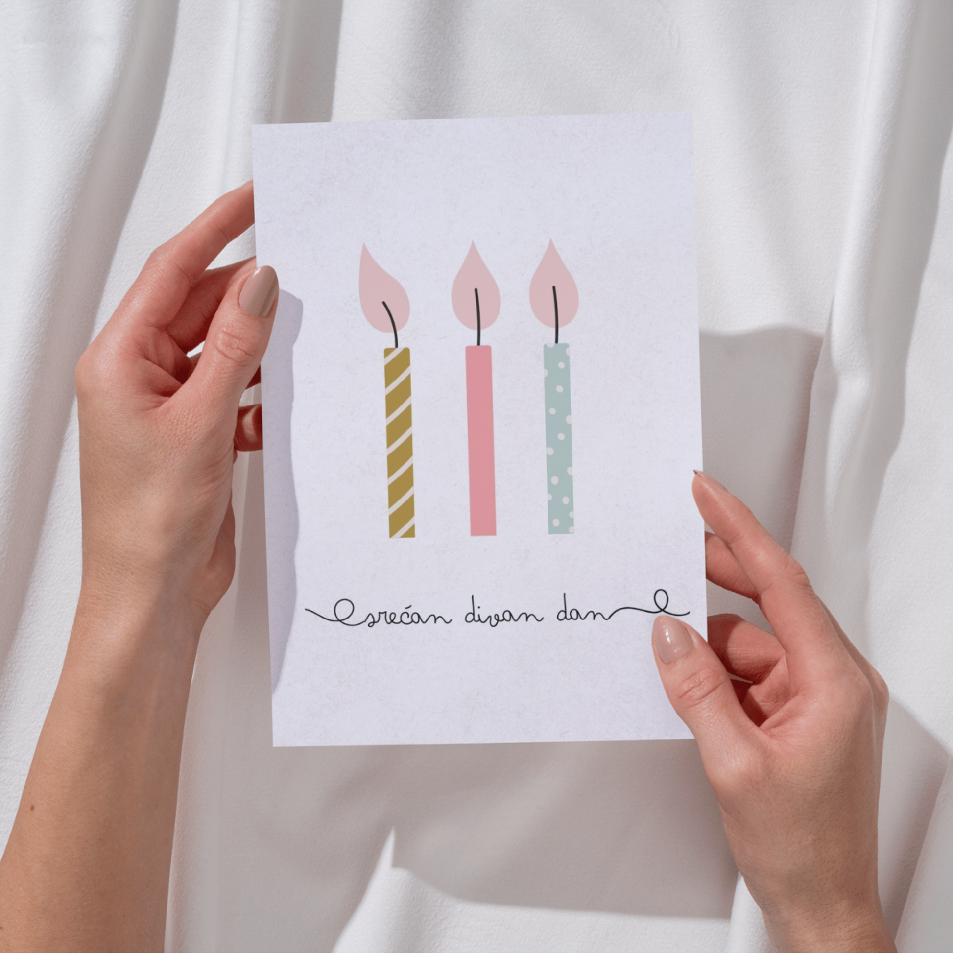Naše čestitke štampane su na 300g reljefnom papiru i dolaze uz belu elegantnu kovertu. Upišite vašu poruku u napomeni pri kupovini, a mi ćemo je odštampati i zalepiti u čestitku.