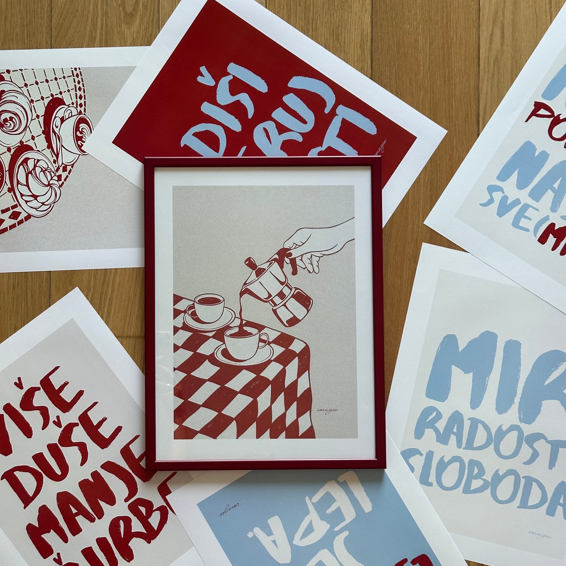 Sa dizajnom rukom oslikanih slova u umirujućim tonovima, integrisanim belim paspartuom i elegantnim bordo ramom, ovaj art poster unosi smisao i harmoniju u svaki prostor.