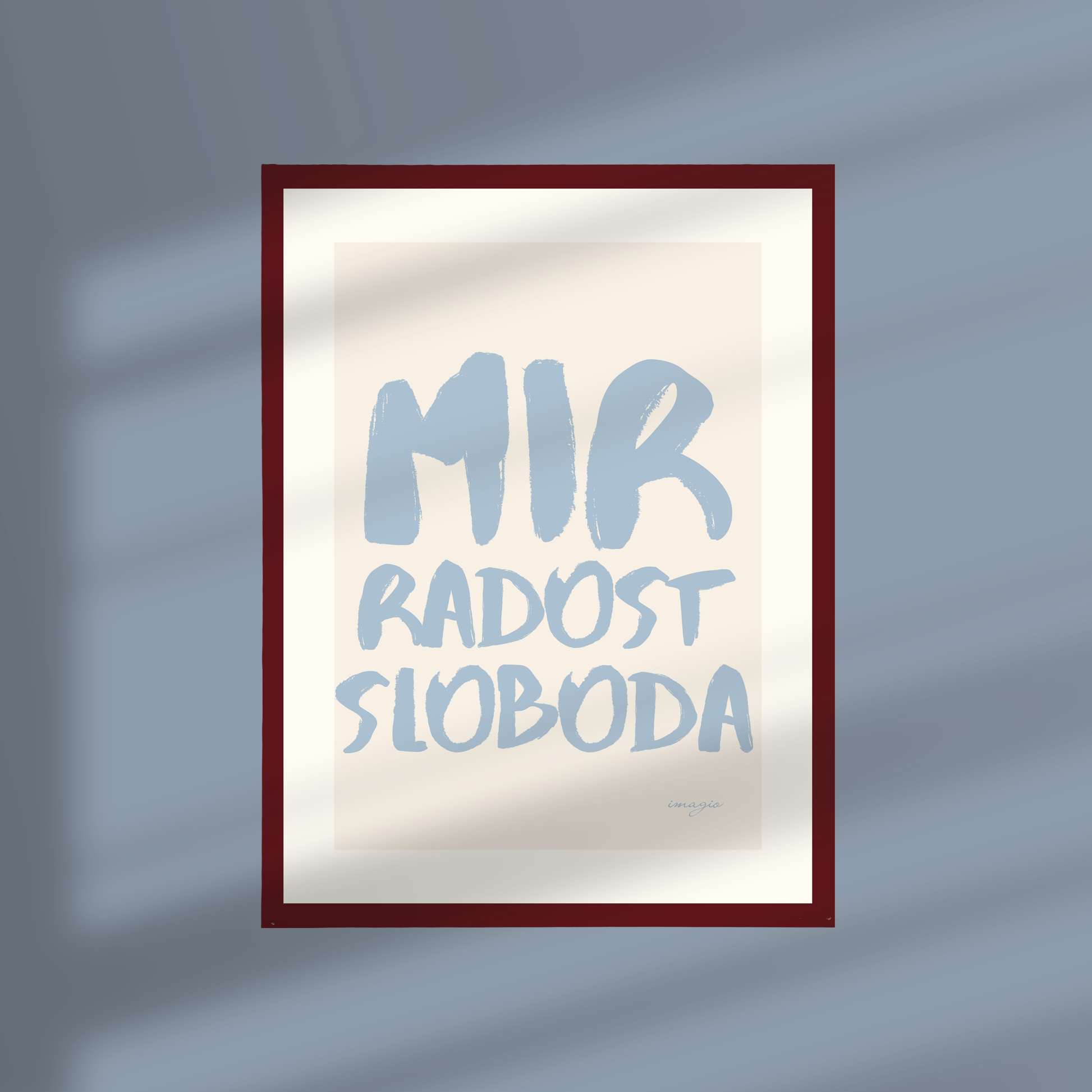 Sa dizajnom rukom oslikanih slova u umirujućim tonovima, integrisanim belim paspartuom i elegantnim bordo ramom, ovaj art poster unosi smisao i harmoniju u svaki prostor.